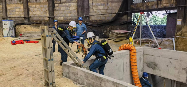 為進(jìn)一步加強(qiáng)職工的安全環(huán)保意識,提高在有限空間作業(yè)中突發(fā)事故的應(yīng)急處置能力,掌握科學(xué)的事故處置程序,并最大限度地減少事故造成的人員傷亡,同時(shí)防止因盲目施救而引發(fā)事故擴(kuò)大,攀藍(lán)鼎生產(chǎn)部于2024年3月25日組織了一場《有限空間作業(yè)中毒處置》應(yīng)急預(yù)案演練。