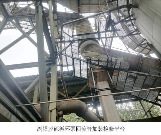 西昌藍鼎在7月初順利完成了球團脫硫循環(huán)泵管道及回流管檢修平臺的改造工程。本次改造工程歷時兩個月,涉及的改造內(nèi)容有6臺脫硫循環(huán)泵管道最高位出口處以和副塔脫硫循環(huán)泵回流管全管道的檢修平臺加裝工作。